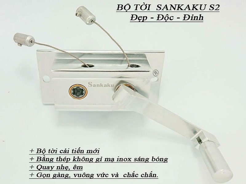 - Cụm pully và dẫn hướng truyền lực với các bánh xe bằng đồng, không bao giờ gỉ sét, giúp quay nhẹ, êm và nâng hạ dễ dàng.